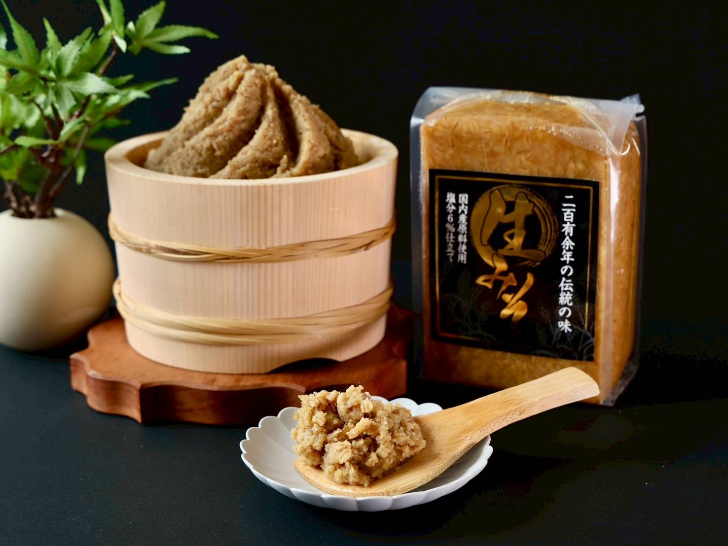 国内産原料と名水百選にも選ばれた水を使用し、塩分も通常10%~12%あるものを半分の6%に抑えた減塩みそです。