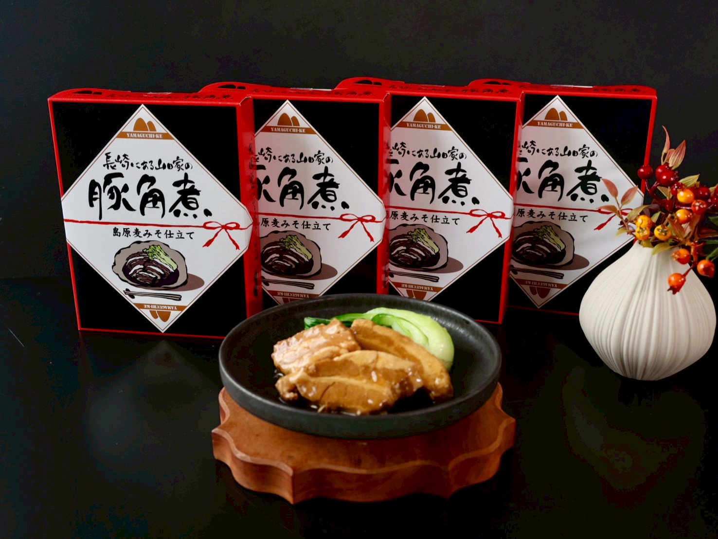 島原味噌をもっと多くの人に知ってもらいたく、隠し味に島原味噌を使用したまろやかな家庭の味が楽しめる豚角煮。お中元・お歳暮などの贈り物としても人気です。